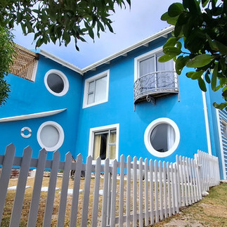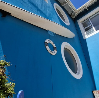 3 Clingen Street is a home that feels as if it drifted in from the ocean and anchored itself in the warm, sunlit streets of Agulhas. Only a short walk from the tidal pools, lighthouse, village centre and the Southernmost Tip of Africa, the house immediately sets a coastal tone with its ocean-blue exterior, porthole-style windows and surfboard décor. Sunlight fills the home throughout the day, giving it a soft, summery atmosphere that lasts all year round.
