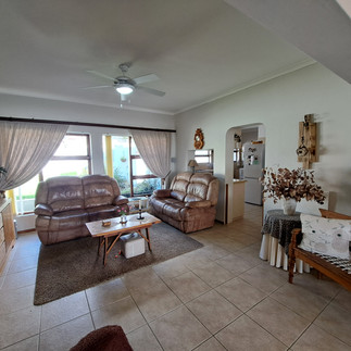 Accommodation is taken care of with three bedrooms with built-in cupboards, the master bedroom has en-suite bathroom. The second bathroom comprise a walk-in shower and basin with a separate toilet. All bedrooms, with views, are fitted with large windows, letting natural light in.